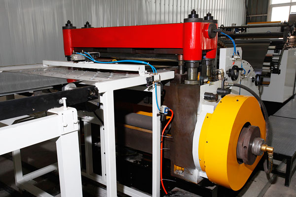 生產(chǎn)線主要由:開卷機,夾送機,校平機.輥子輸送,剪板機或波形剪板機,皮帶輸送,收料機,電氣控制柜等組成。電 控原件采用進口的PLC程序控制系統(tǒng)及交流伺服系統(tǒng),具有剪切精度準確,生產(chǎn)效率高等特點,并有計數(shù)功能。